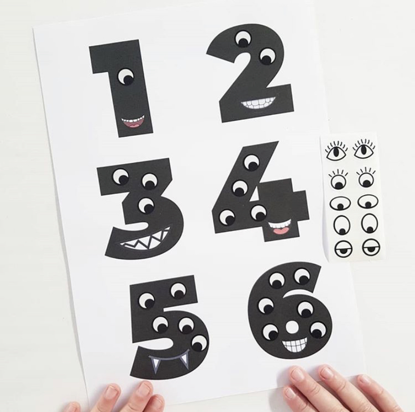 2. You can now play any way that you like! You can use googly eyes to decorate your numbers, either gluing them down, or if you would like to use your print out over and over, simply use the googly eyes like counters. That way you can move them into place, and then clear them away.