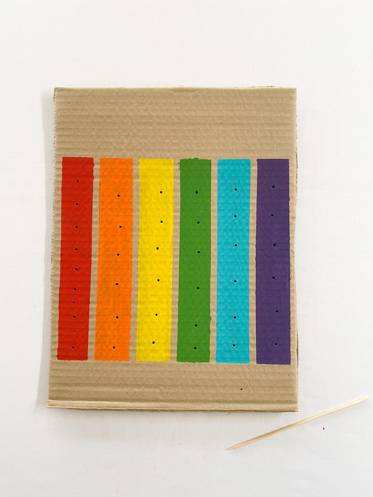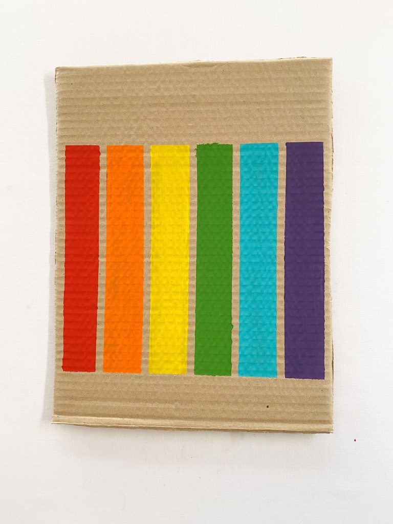 1. Paint strips of color onto the piece of recycled cardboard.