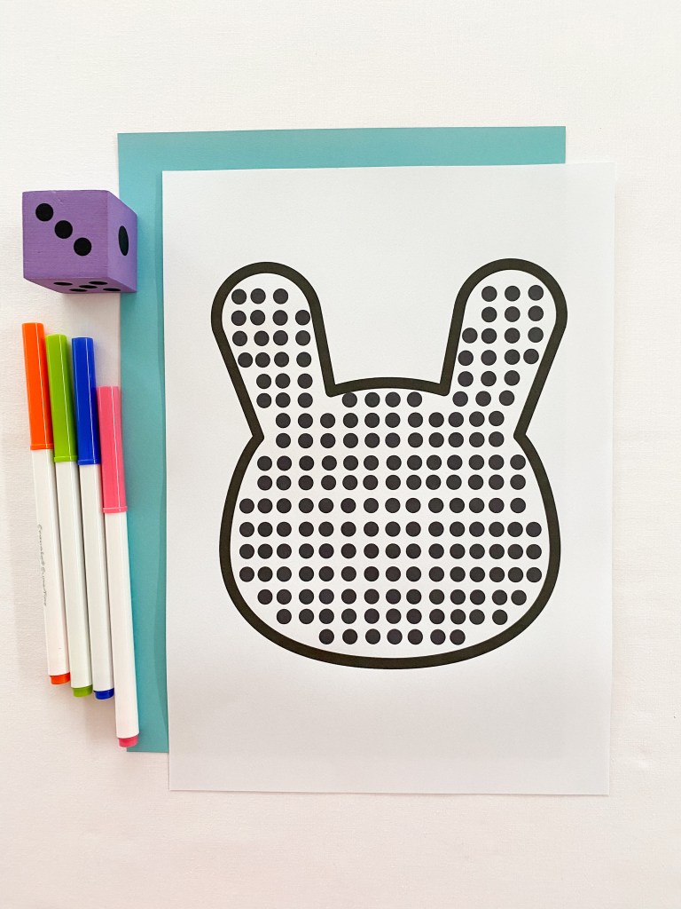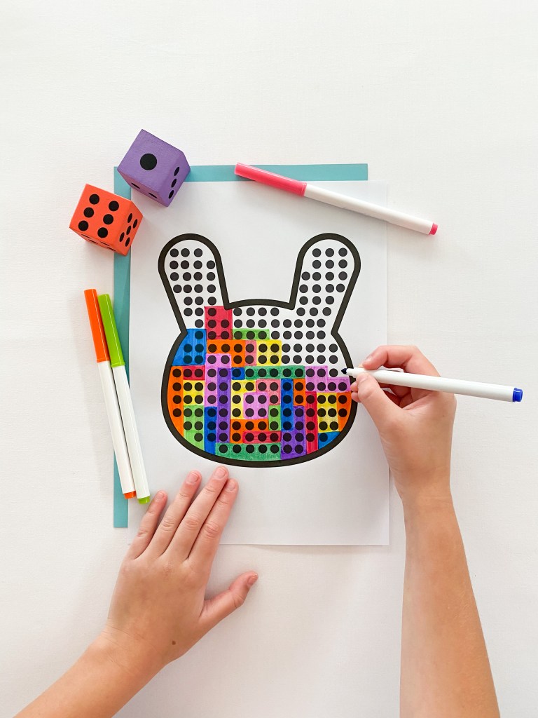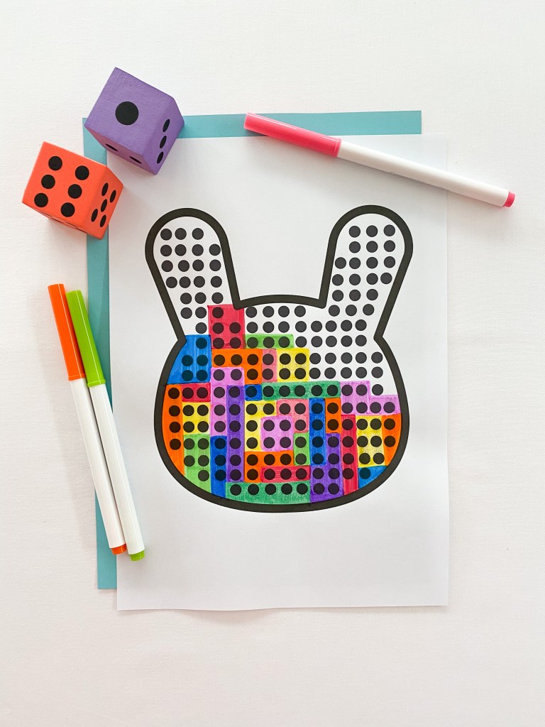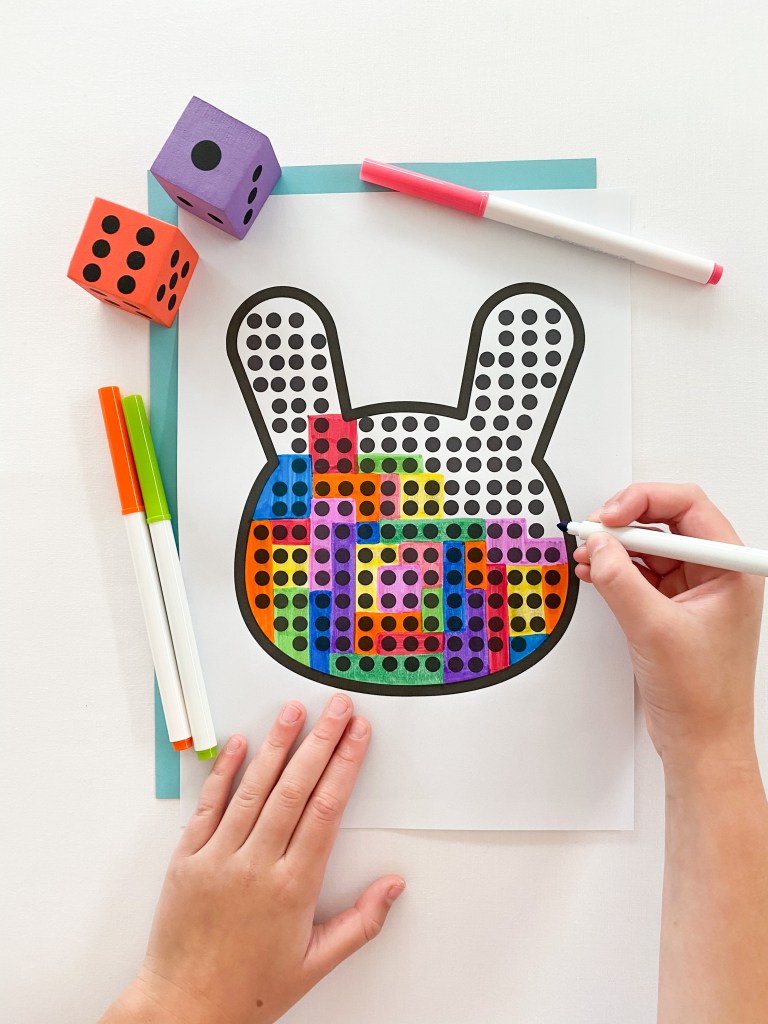 3. Keep rolling the dice and coloring until you have colored your entire rabbit. You might also like to play this game with siblings or a friend, taking turns to roll and color the rabbit.