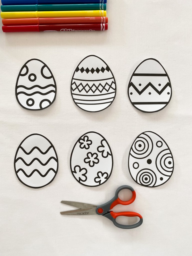 2. Using scissors carefully cut around the outline of each Easter egg.