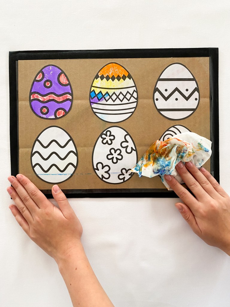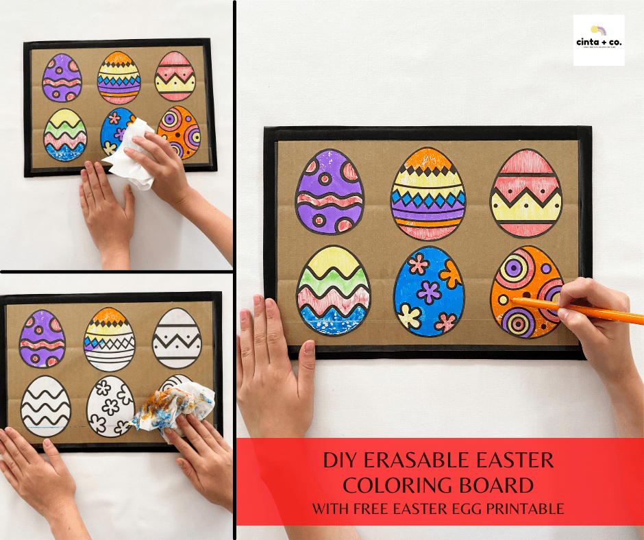 Even though it is still over a month to Easter, I thought it would be fun to share a really super easy Easter egg craft with you. This one is a DIY erasable coloring board. These boards require minimal materials, are really easy to make and once made, can be used over and over again!