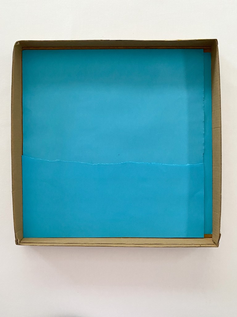 1. Very carefully cut the front away from the cereal box with scissors. This can be a little tricky, so you may need to ask an adult to help you with this. You might also need to secure the corners of the box with sticky tape to prevent it from falling apart. Once your box is ready, line the surface of the box with blue paper so that it looks like water.