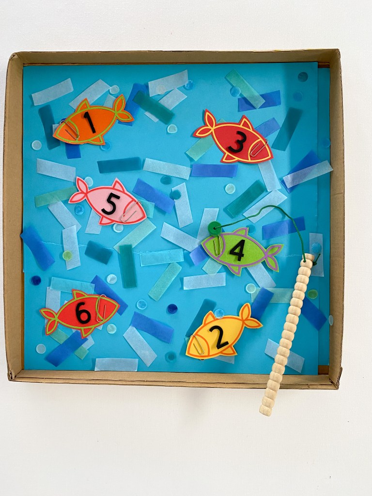DIY fishing games are a wonderful way for children to build and explore many developmental skills including fine motor skills, motor strength, hand eye coordination, problem solving and even some early math and literacy skills.