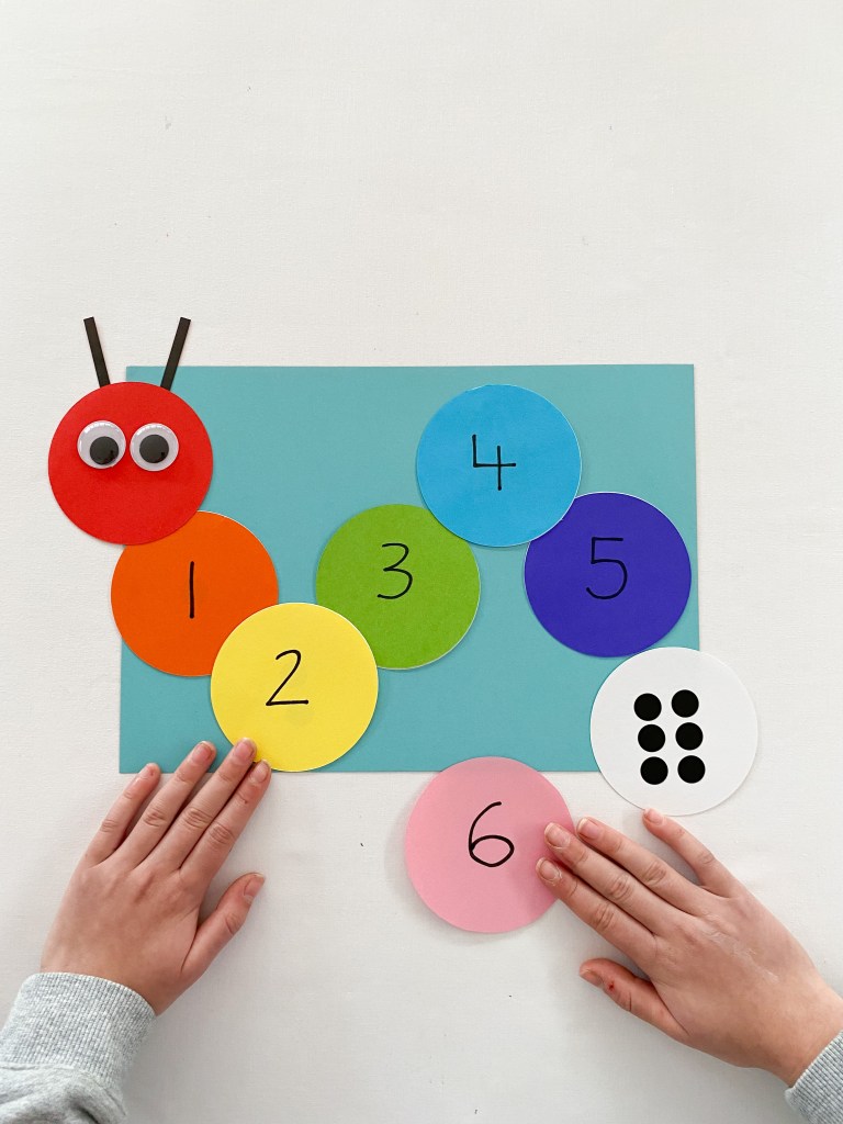 This fun and easy math activity is perfect for developing early numeracy skills for kids. It’s great for practicing number recognition, subitising, 1:1 correspondence and even fine motor skills. Best of all, you will only need a few easy to find materials to put one of these cute caterpillars together.