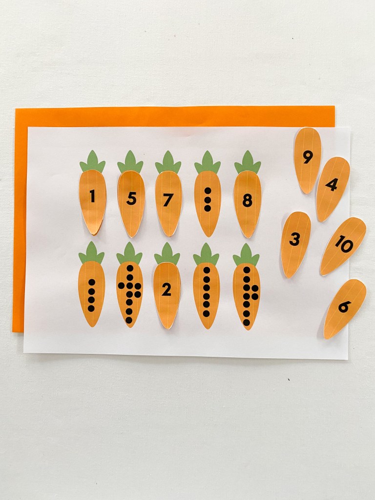 3. Match the numbered carrots to the corresponding carrot on the worksheet. You might like to glue the carrots down, or just match them over and over again.