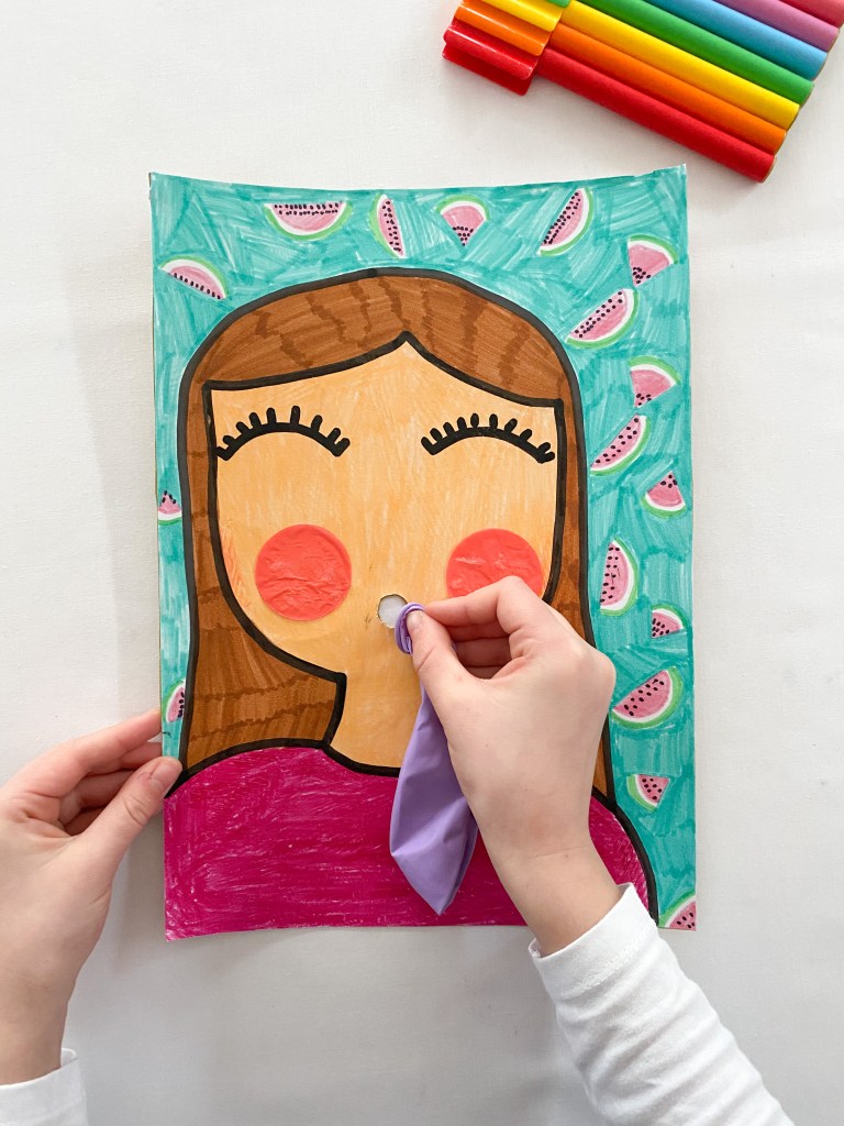4. At this point, paste your picture down onto some card. You don’t have to do this, but the paper on its own might be a little flimsy to hold when you are blowing your balloon.