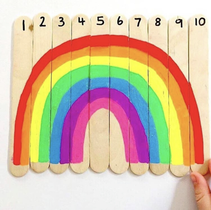 Another neat thing about craft stick puzzles is that they can be used as a fun way to practice number recognition and order. You can label each craft stick with a number (or even letters) and then put your puzzle pieces together in order. Lining up the puzzle pieces and manipulating them into place is also great fine motor skill practice!