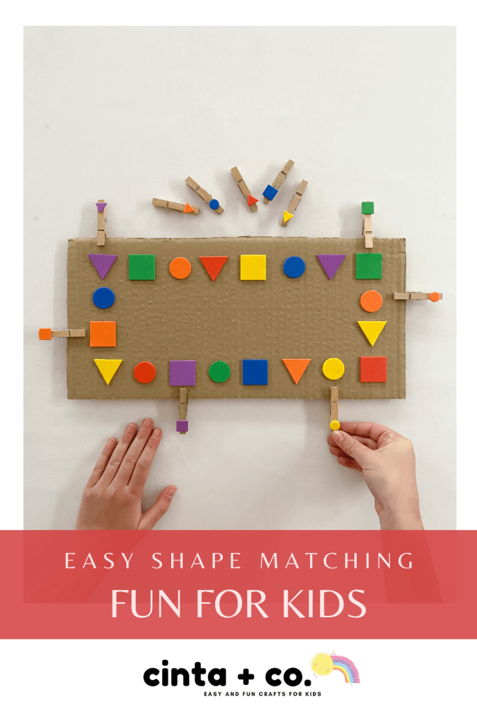 And the neat thing about this game is that there are so many ways to play. You could use a timer and see how quickly you can match the pegs or you could call out a shape or color and find the corresponding peg to match! And if you have colored pegs, you could even match colors to shapes. See the pictures below for that to make more sense 😉